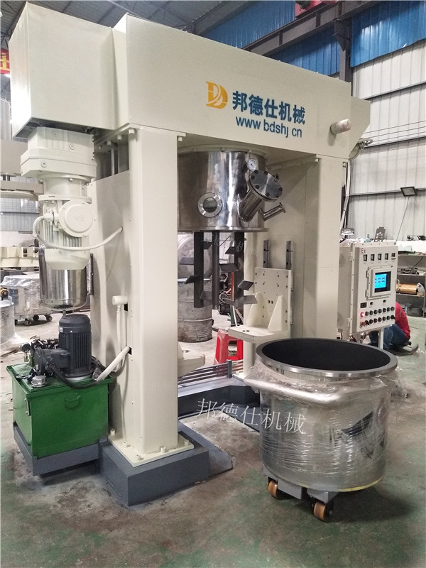 龍門架式行星動(dòng)力混合機(jī)/多功能行星攪拌機(jī)是一種無死點(diǎn)的混合、攪拌、分散設(shè)備。此設(shè)備集行星機(jī)、強(qiáng)力分散機(jī)功能于一體,采用獨(dú)特?cái)嚢铏C(jī)構(gòu),下料桶固定不動(dòng);分散盤、攪拌槳實(shí)現(xiàn)既公轉(zhuǎn)又自轉(zhuǎn)的行星運(yùn)動(dòng),其速度可調(diào)頻變速。使物料作復(fù)雜運(yùn)動(dòng),受到強(qiáng)烈的剪切、攪拌和搓合,物料得以充分混合和破碎。在釜內(nèi)設(shè)計(jì)了自動(dòng)刮壁、刮底結(jié)構(gòu),將粘附著釜壁上的物料刮下繼續(xù)混合,不會(huì)出現(xiàn)混合死角。設(shè)備密封獨(dú)特,可加壓或抽真空去氣泡等。您可以提出您所需要的處理量、設(shè)備形式、規(guī)格要求或您需要加工的物料的性質(zhì),邦德仕的銷售工程師會(huì)提供讓您滿意的方案。