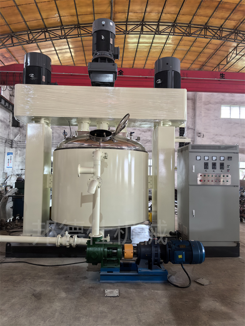 強(qiáng)力分散機(jī)做基料現(xiàn)場(chǎng)-廣東反應(yīng)釜_強(qiáng)力分散機(jī)_行星攪拌機(jī)_真空捏合機(jī)-佛山市邦德仕機(jī)械設(shè)備有限公司